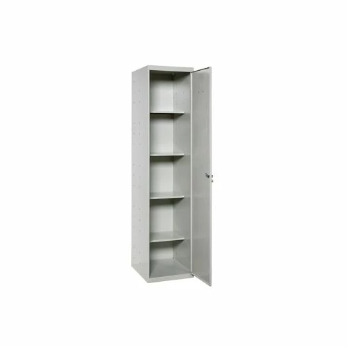 Armario multiusos metalico resistente y de gran capacidad. No necesita anclaje a la pared. Se compone de 1 puerta con 4 bandejas metalicas en su interior para un mejor almacenamiento. Se entrega desmontado. Montaje con tornillos. Color del producto: gris. Dimensiones: 1800 x 400 x 500 mm. Nº estantes: 4.