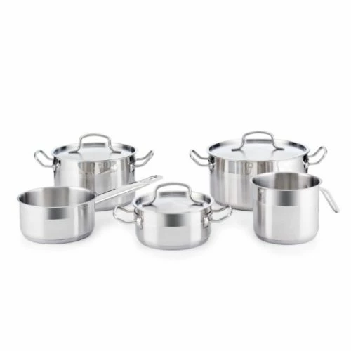 BATERIA 5 PIEZAS ACERO INOX 18/0 DISEÑO PROFESIONAL, ACABADO MATE /ESPEJO,TAPAS DE ACERO INOXIDABLE, ASAS Y POMOS EN ACERO, FONDO CAPSULADO 3MM. Material: Acero Inox. Terminación interior Mate. Terminación exterior mate parte inferior y espejo la superior. Valido para todos tipos de cocina, incluida inducción. Pomos y asas en inox, diseño profesional. Composición: Hervidor 14x12cm sin tapa. Cazo 16x8cm sin tapa, Cacerola con tapa 16x8cm. Olla con tapa 20x12cm, Cacerola con tapa 24x12cm.