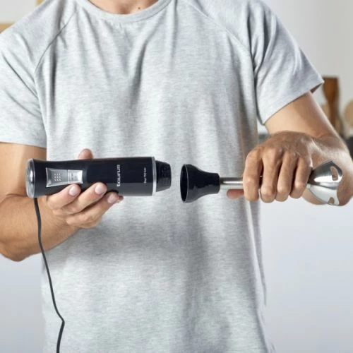 Batidora de mano de 750W que bate y pica. Cuenta con cuchillas de acero inoxidable de alto rendimiento y doble efecto. Dispone de un regulador de 20 velocidades ajustables para poder elaborar todo tipo de recetas. Y, si necesitas conseguir la máxima potencia en cualquier momento usa la función turbo. Las cuchillas son de acero inoxidable, con doble efecto (baten y pican) y de alto rendimiento. Este sistema consiste en que mientras las cuchillas laterales baten, las verticales pican el alimento para que vuelva a caer hasta el fondo del recipiente y vuelva a ser succionado y triturado. Incorpora como accesorio un vaso medidor de 500 ml. Es apto para lavar en el lavavajillas. Tanto la batidora como el vaso medidor son libres de BPA. La batidora de mano Bapi 750 Inox cuenta con un diseño de agarre ergonómico para que se adapte correctamente a la mano del usuario, permitiendo un uso cómodo y un manejo seguro. Garantía de 2 años.
