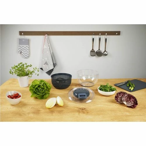 Excelente para escurrir el agua de la lechuga, escarola, col, etc… Con base antideslizante que evita el movimiento del accesorio mientras lo utilizamos. Con una práctica cuerda que se utiliza para el centrifugado. Tamíz extraible. Podemos utilizar el recipiente como ensaladera. 5 años de garantía.