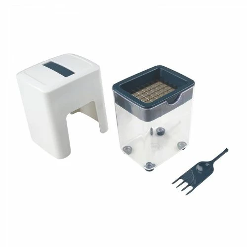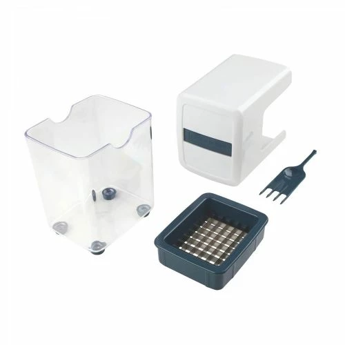 Excelente para cortar frutas y verduras con forma de bastoncillos con base antideslizante que evita el movimiento del accesorio mientras lo utilizamos provisto de contenedor con tapa donde cae el alimento cortado cuchillas extremadamente afiladas Incluye tenedor de limpieza