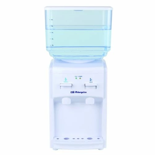 Dispensador de agua fría DA 5525 ORBEGOZO – Dispensa agua fría y del tiempo con depósito de 7 L para el agua incluido. – Indicadores luminosos Encendido y Agua fría. – Bandeja recoge gotas extraíble. – Fácil de limpiar y rellenar. – Capacidad de enfriamiento 8º – 15 º. – Depósito de agua refrigerante 1 – 1.5 l/h. – Potencia 70w. 230v.50hz