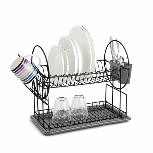 Escurreplatos Cocina Sobremesa Doble Con Bandeja 53,5×24,5x37cm Cromado Vivahogar Vh123002