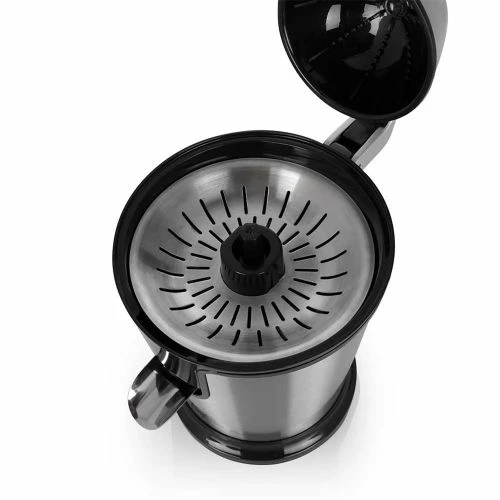 Cuenta con todos los elementos e innovaciones necesarias para que su uso sea fácil y rápido, además de eficiente. Con un potente motor profesional AC de 160 W, este exprimidor te ofrece un sistema de extracción continua y con un encendido automático al momento de detectar la presión. Además, posee la boquilla con el sistema antigoteo y un brazo articulado que facilita la extracción del zumo. Como accesorios, incorpora dos conos para adaptarlos a los distintos tipos de fruta Fácil de desmontar y limpiar con piezas aptas para su lavado en lavavajillas. En la parte inferior encontrarás un práctico recoge cables para almacenarlo cómodamente y las patas antideslizantes para asegurar el producto en una superficie plana. Potencia: 160 W. Encendido automático al detectar la presión. Cono superior desmontable. Sistema de extracción continua. Boquilla con sistema antigoteo. Motor pr