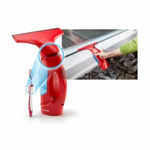 Aspirador eléctrico para ventanas muy ligero y fácil de usar. Con cabezal flexible para un mejor acabado en bordes y esquinas.Seca y da brillo a ventanas, azulejos y espejos de una sola pasada. Incluso aspira líquido en superficies horizontales.Reducirás tiempo y esfuerzo para conseguir una limpieza perfecta y sin rastros.Batería extra duradera: limpia hasta 120 ventanas por cargaFunciona en todas las direcciones sin gotearDepósito de agua fácil de desmontar y enjuagar. Lavable en lavavajillasMedidas: 180 x 322 x 122 mm. Péqueño electrodoméstico. Color rojo.Peso 920 gramos.Bateria de Litio 3,6 Voltios