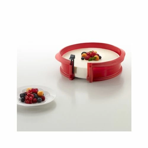 Molde de repostería redondo desmontable LÉKUÉ – 100% Silicona Platino + base cerámica – Apto para horno, microondas, nevera y lavavajillas. – Temperatura:-60ºC / +220ºC – Dimensiones: mm Ø230 – H70 – Capacidad: 2500ml – La base de cerámica no se raya y es estable, de gran durabilidad y resistente a altas temperaturas. – El sistema de cierre con pinza y las juntas de silicona permiten abrir y cerrar el molde sin esfuerzo. – El cuerpo del molde es flexible y resistente a la vez, y antiadherente para un desmoldeo fácil.