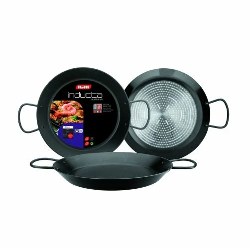 Paella aluminio 34 cm , fondo ferrítico para inducción , asas metálicas antiadeherentes. 3 capas.