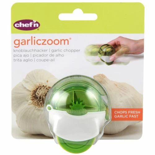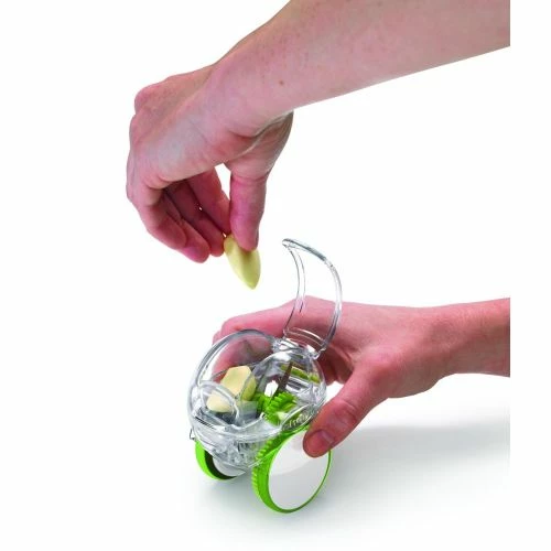 Pica ajo fresco rápida y fácilmente con tan solo introducir los dientes y rodar mas o menos según el tamaño de picada que deseemos obtener Apto para lavavajillas. Material: Cuerpo plástico SAN Color: Verde.