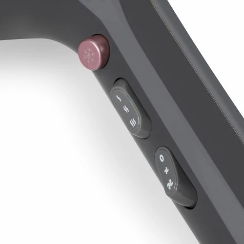 Secador motor DC. Filtro posterior extraíble. Limitador térmico de seguridad. Mandos independientes integrados. 3 posiciones de caudal de aire 0 – 1 – 2. 3 niveles de temperatura 1 – 2 – 3. Botón de aire frío. Boquilla concentradora de 13mm. Incluye difusor de aire. Cable retráctil. Peso ligero. Anilla para colgar. Voltaje 230 V. Potencia 2.000 W